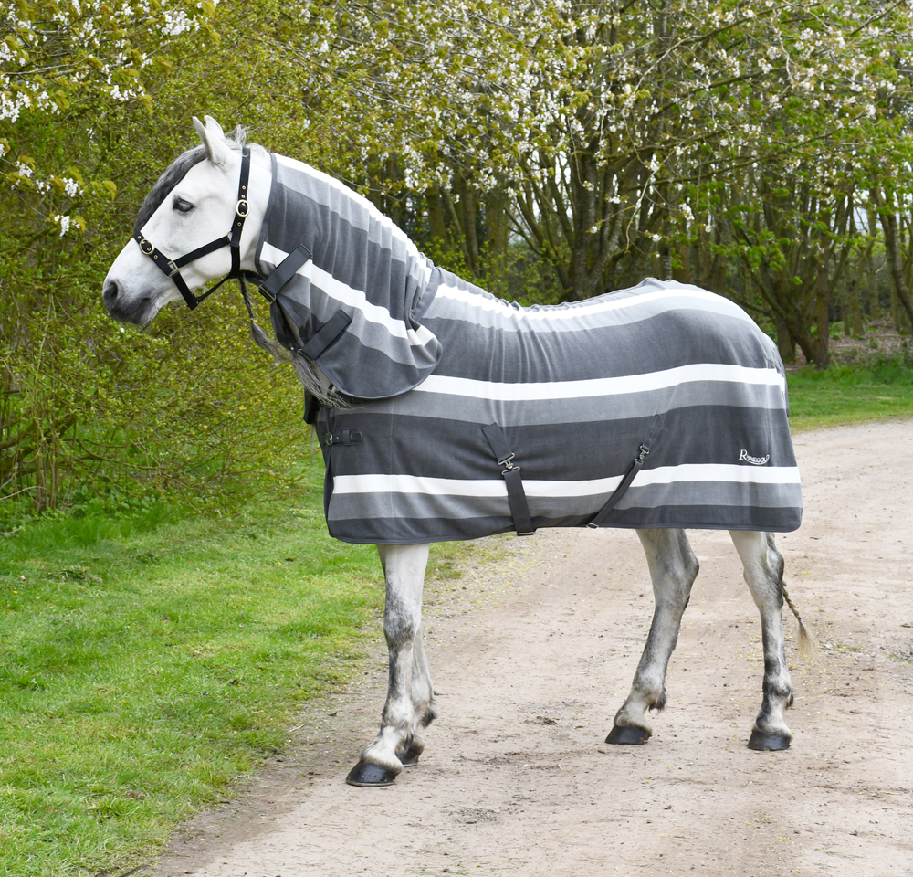 Full neck fleece winter horse rugs, designed with no bulky inside neck seam to help alleviate rubbing. Features an elasticated loop at the poll for securing to a headcollar. Perfect for clipped Horses or keeping them clean for showing.