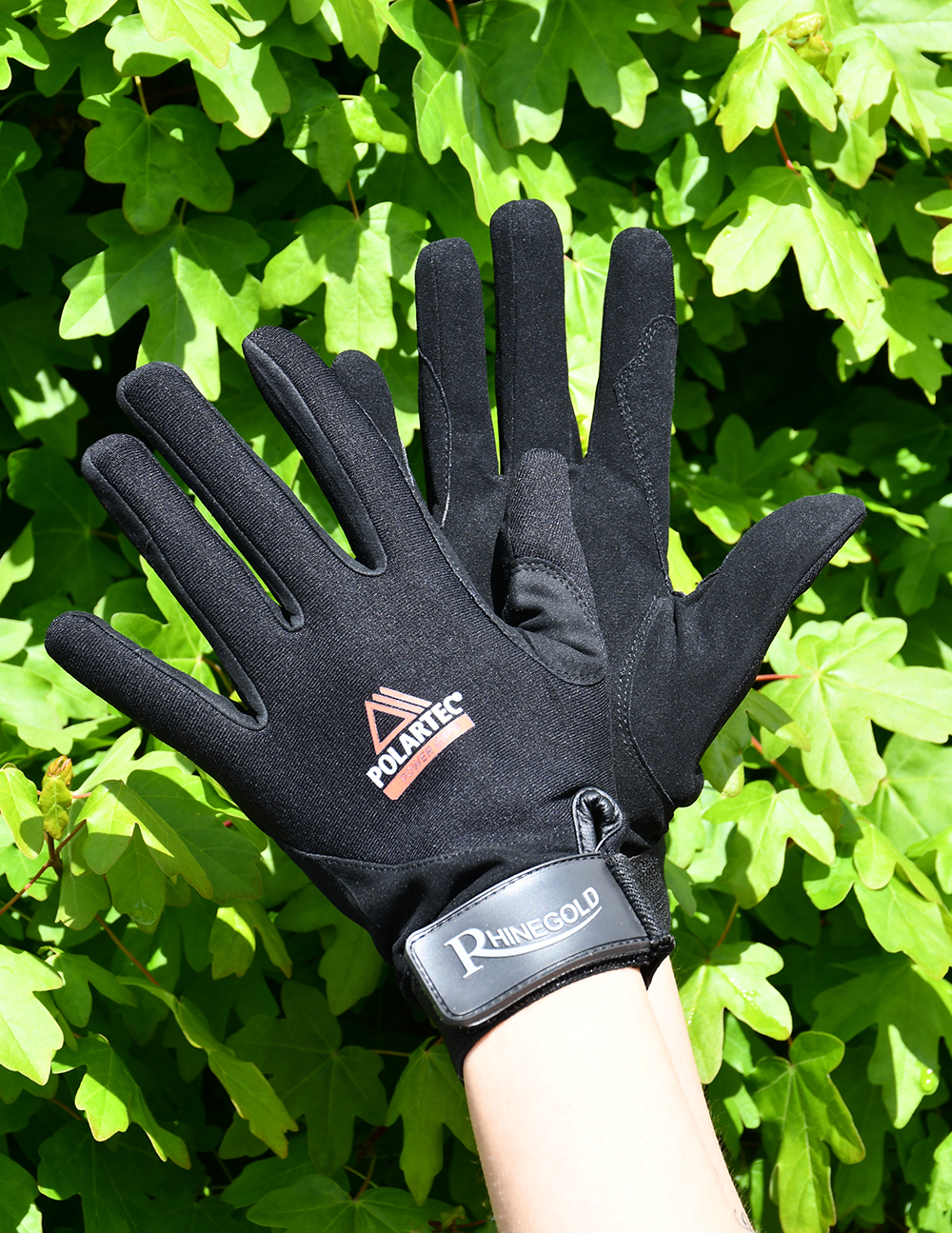 These ladies horse riding gloves are made from POLARTEC POWER DRY fabric fantastic wicking properties  and superb next to skin comfort make these unbeatable riding/ yard gloves that can be worn alone in cool conditions but also as a base layer. POLARTEC Power Dry fabric is highly breathable and wicks moisture away from the skin quickly. With a touch tape wrist strap for a secure fit.