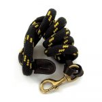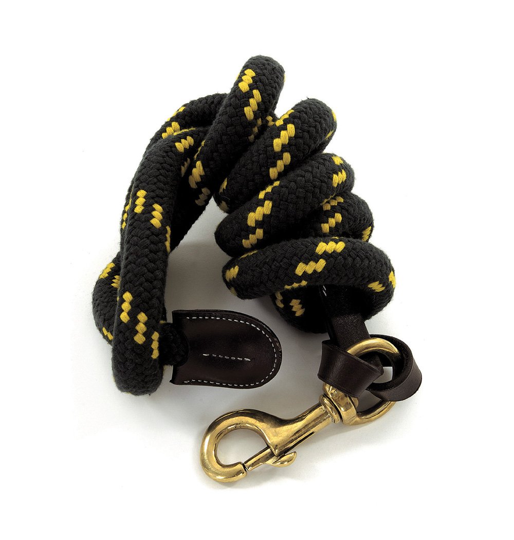 Padded rope leads for horses, with cotton outer with large brass trigger clip. Two-metre length.