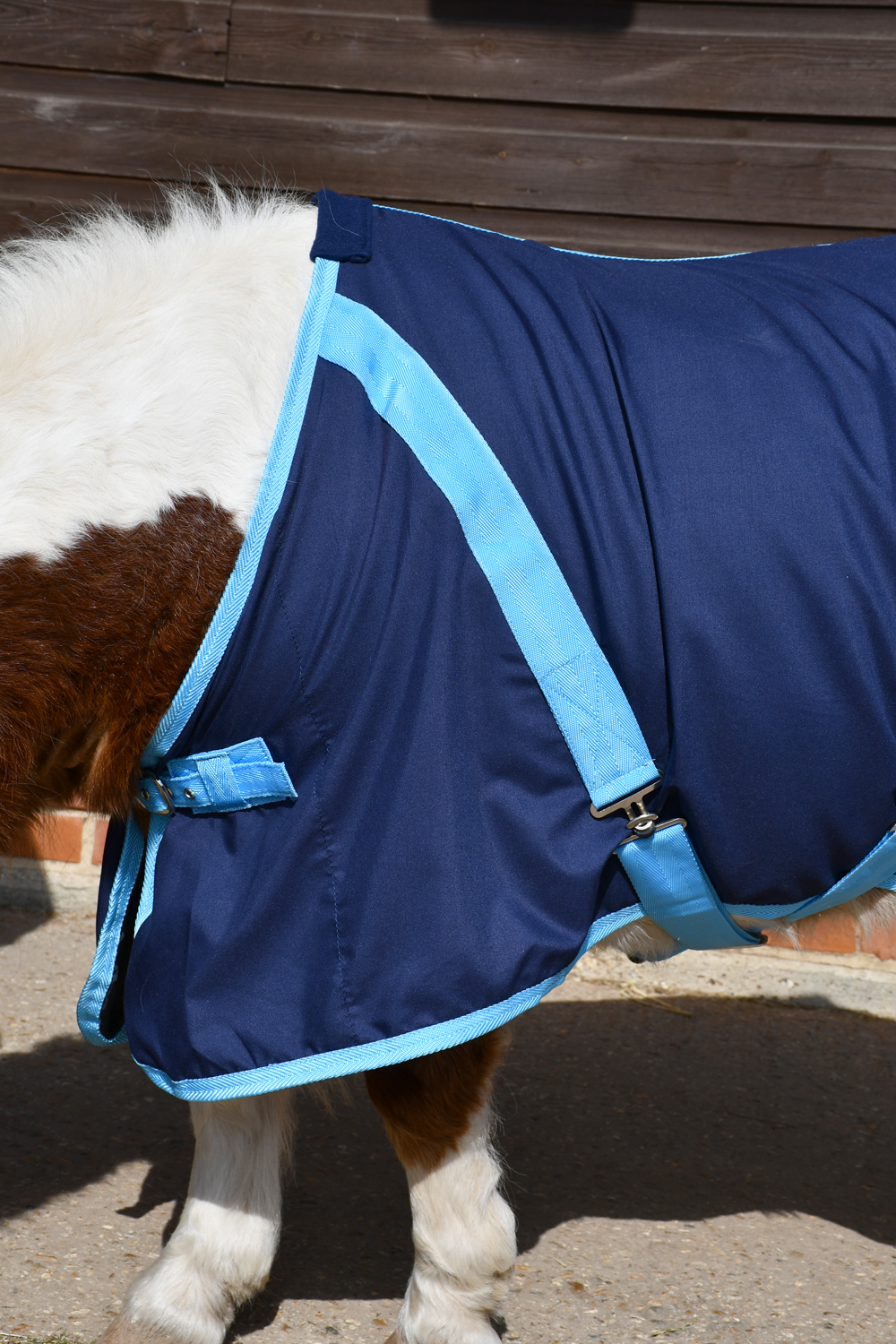 Extra deep cotton mix summer sheets for horses. Crossover surcingles, single chest strap, can be used as an under layer with winter rugs for hygiene and ease of washing. Also an ideal travel rug.