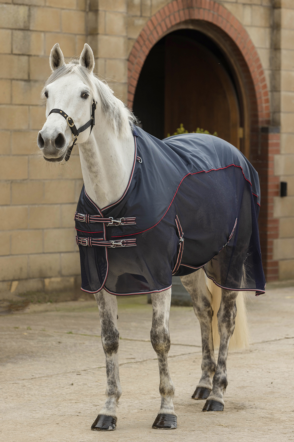 The Mombasa Fly Rug is made with a 600 denier waterproof topline with a robust but soft mesh lower part to the rug.