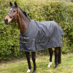 Fuss free double chest straps and cross over surcingles. The high cut shoulder gusset will allow a wider range of movement whilst the large tailguard will protect against any rain showers.