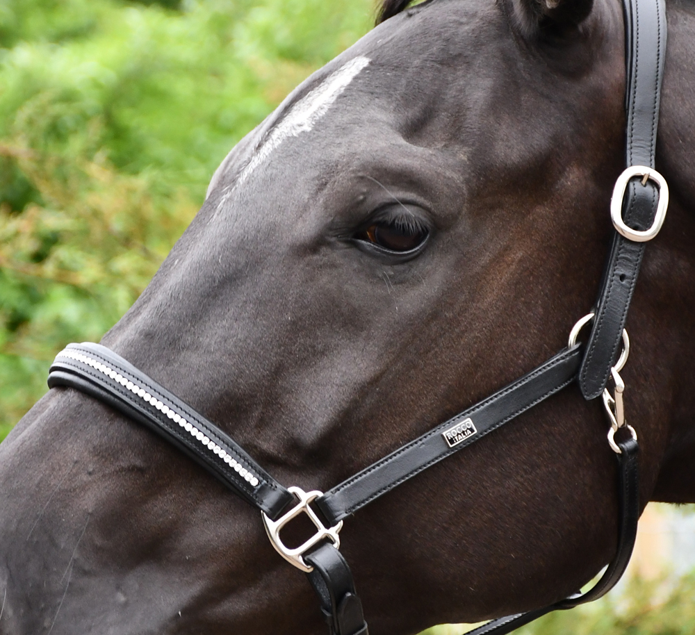 Luxury padded leather horse headcollar with crystal embellished noseband.