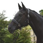 Luxury padded leather headcollar with metallic trim. Available in Black with Silver piping and Havana with Rosegold piping.