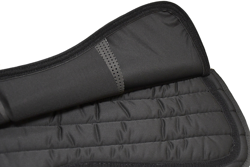 The pads are secured within three compartments to transform this saddle pad into a front riser, back riser or correct any bi-lateral imbalance; finished with a discreet touch tape closure.